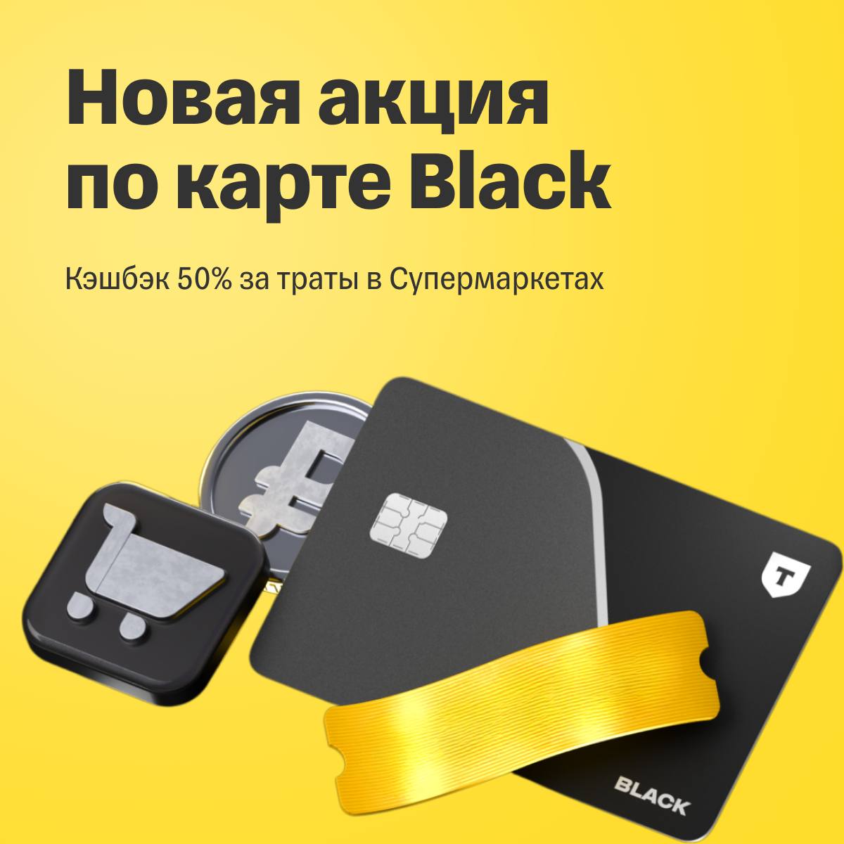Оформите карту Black и оплатите покупки в Супермаркетах и получите кэшбэк 50% в течение 30 дней с даты активации карты.