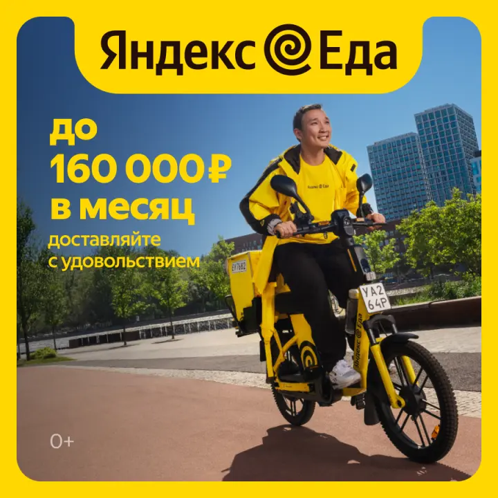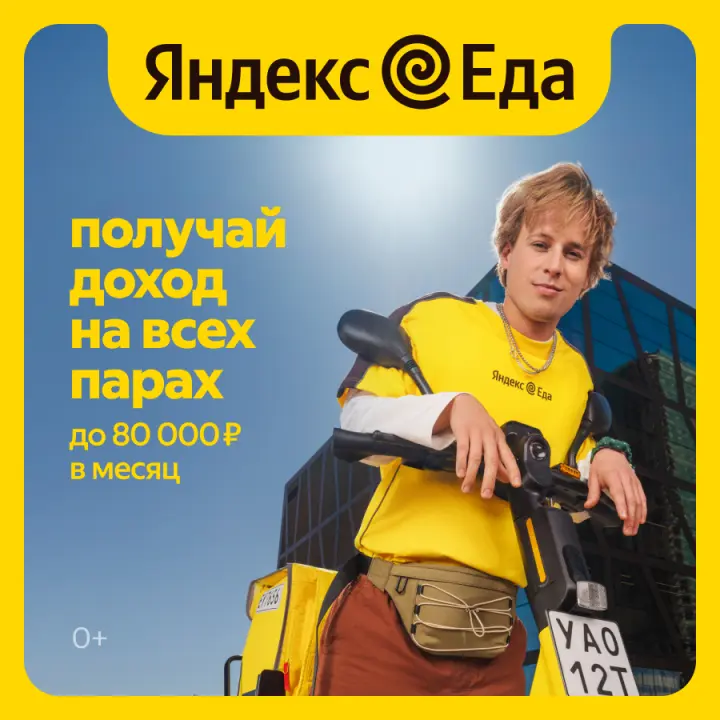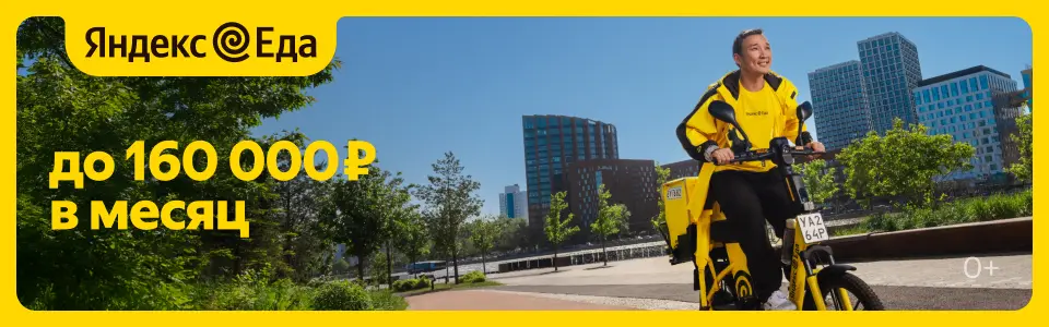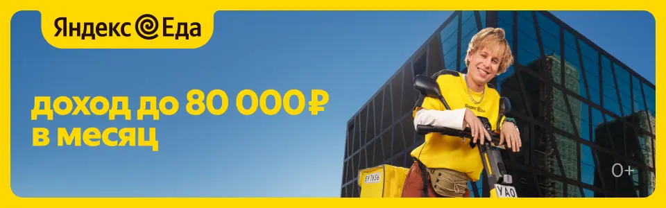 Стань курьером Яндекс Еды и зарабатывай в удобном для себя режиме. Подходит как для подработки, так и для основного дохода.